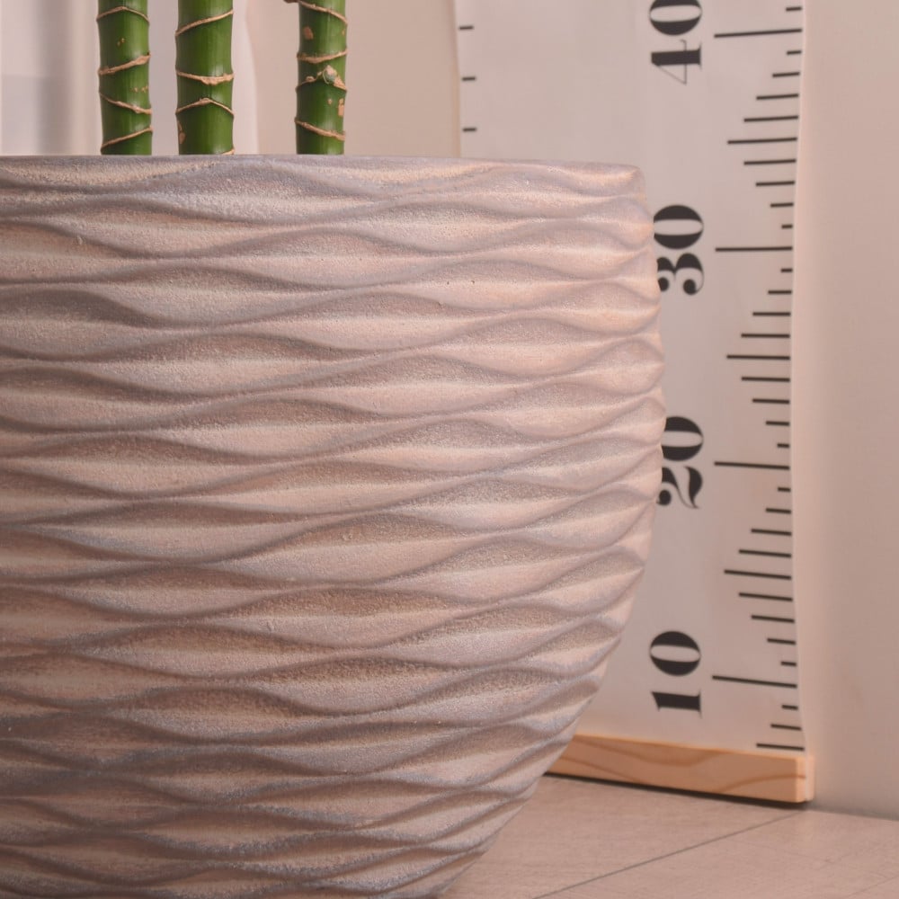 انثوريوم بزهور وردية مع حوض سيراميك مخطط