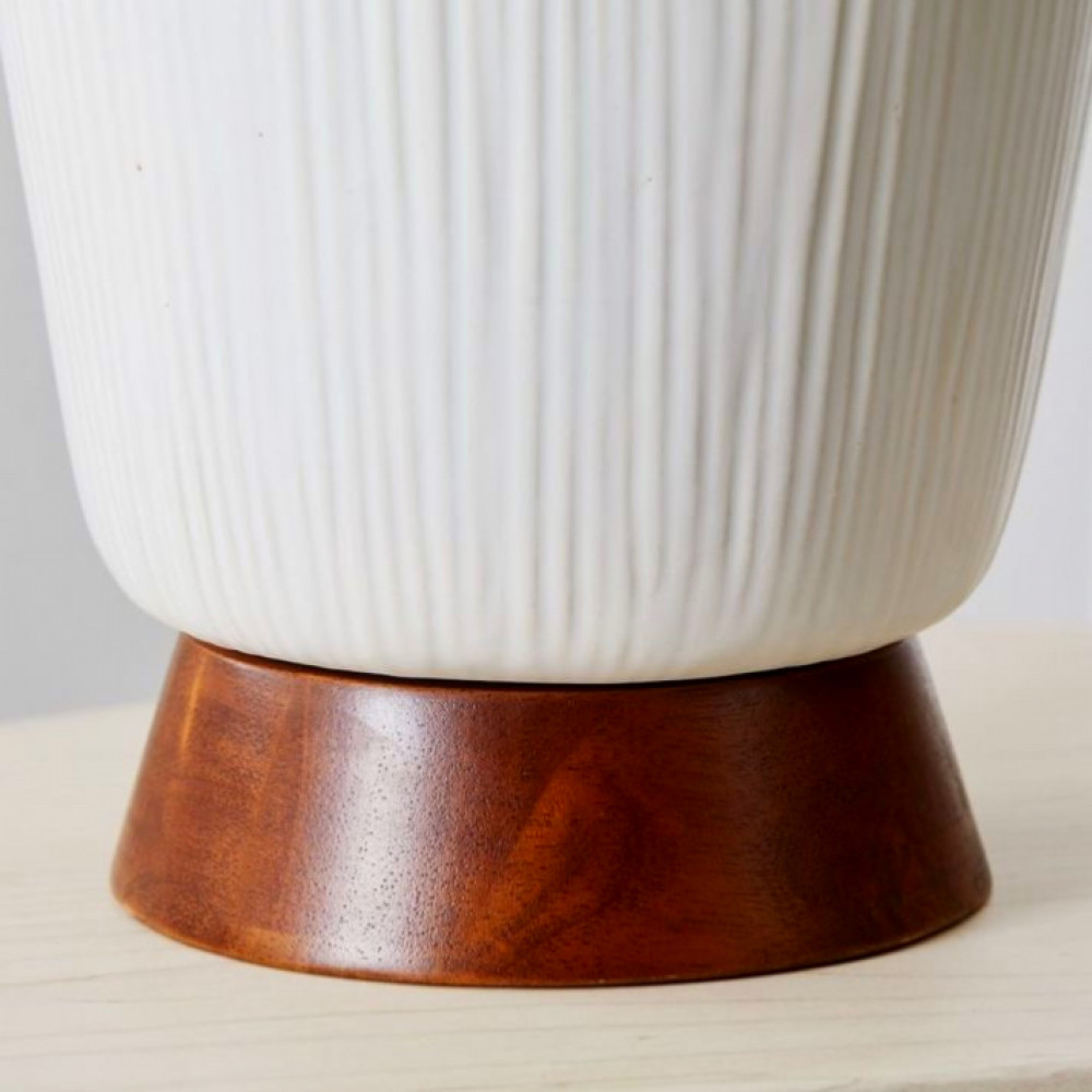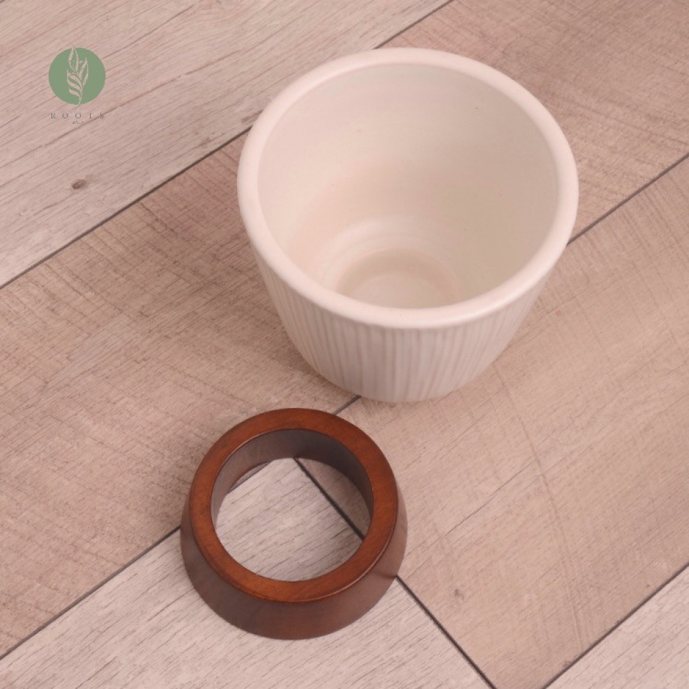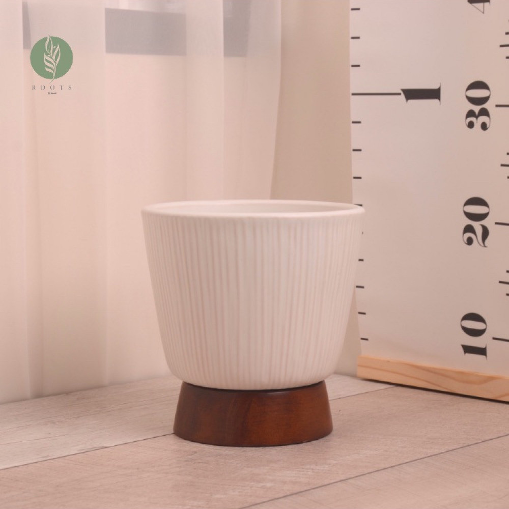 وعاء زرع أنيق منقوش باللون الأبيض مع قاعدة باللون البنيقطر.6.5 بوصة وارتفاع 7.5. بوصةلا توجد فتحة تصريف