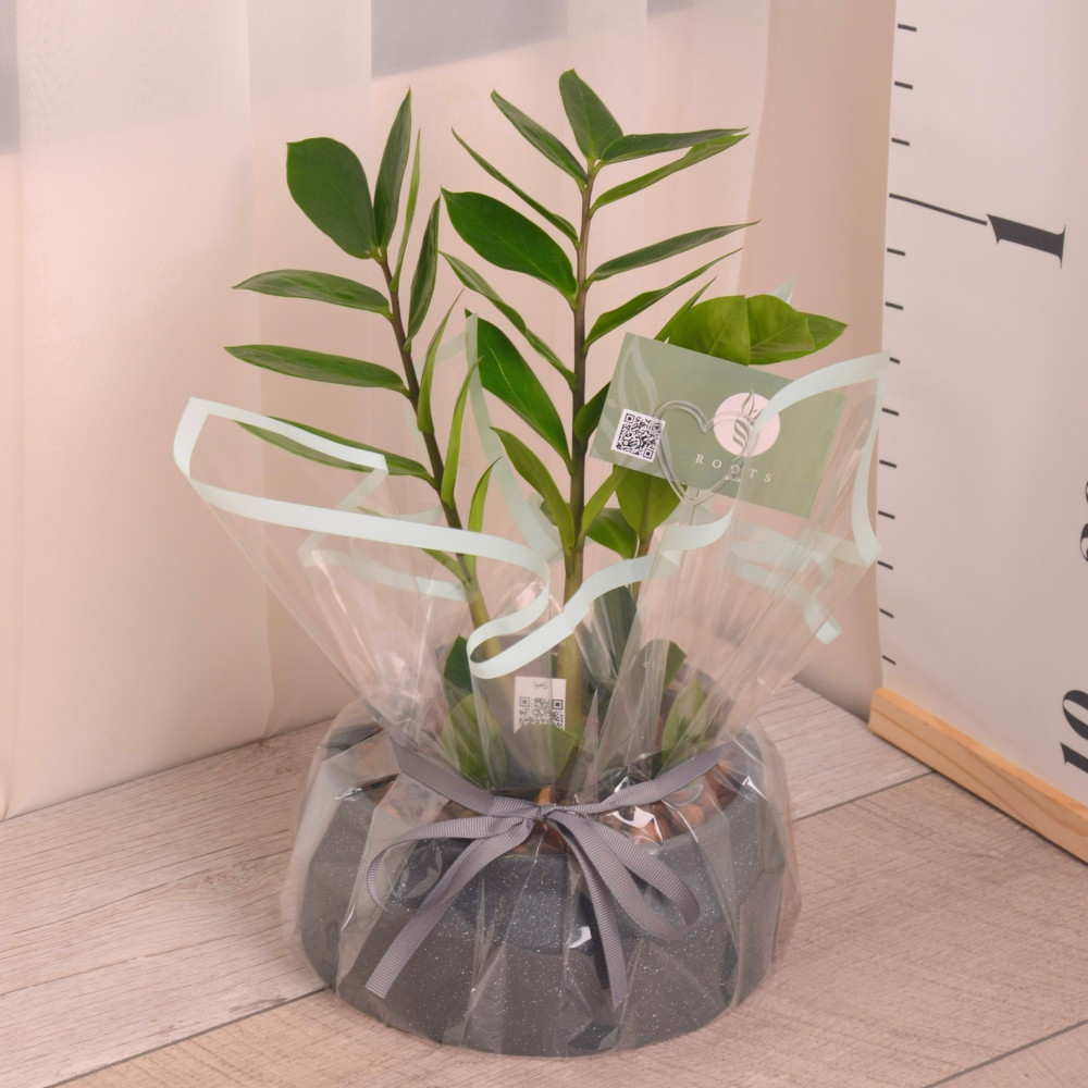 توزيعات بوتس أو ببروميا في وعاء بلاستيك منوع مع تغريسة العيد