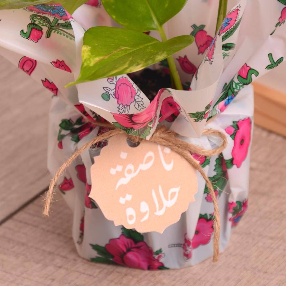 أنثوريوم صغير بحوض سيراميك أنيق مع تاق العيد