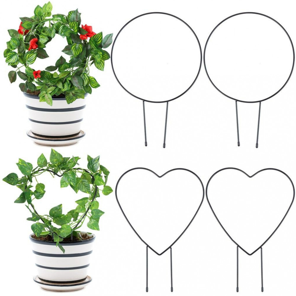 حامل دعم النباتات المتسلقة على شكل قلب ودائرة من الحديد المعدني