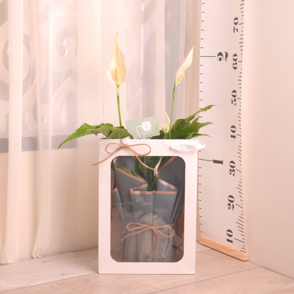 نبتة بوتس بأصيص أبيض مع علبة شوكولاتة هدية العيد