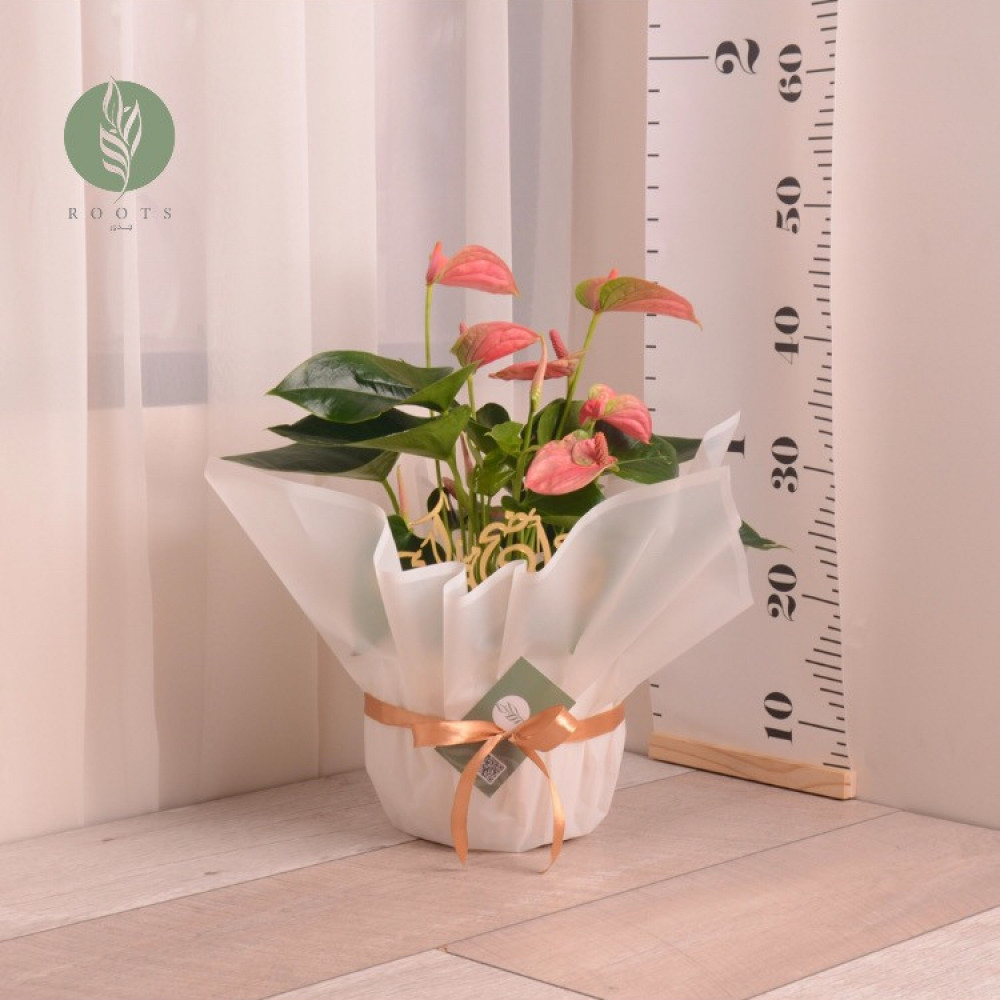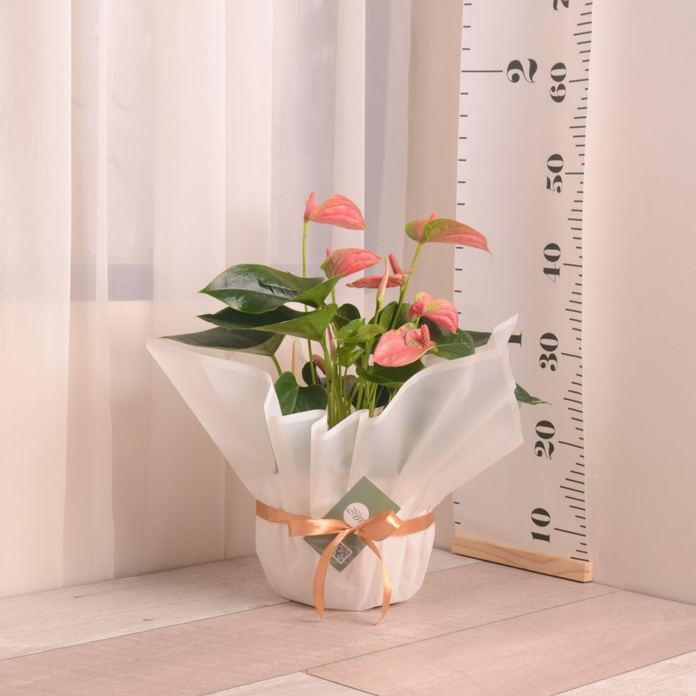 انثوريوم بزهور وردية مع حوض سيراميك من ويست الم