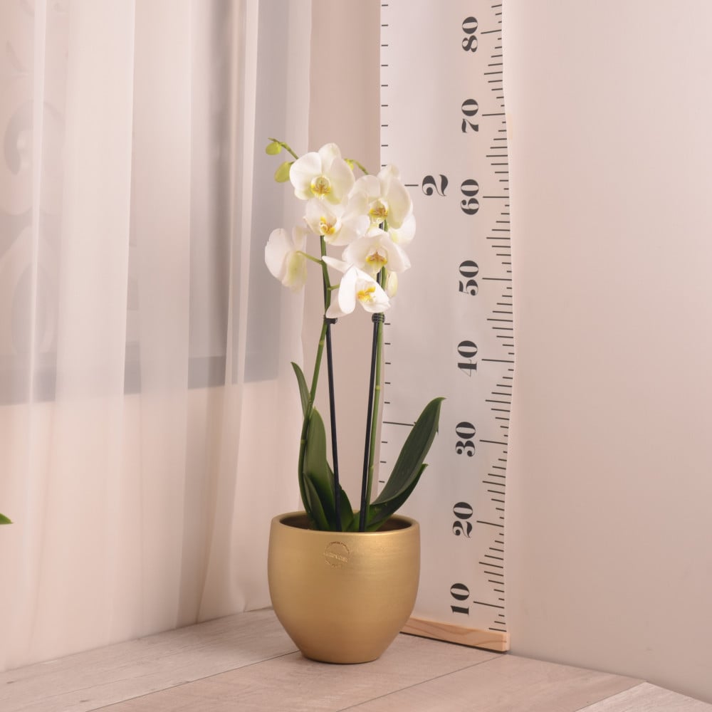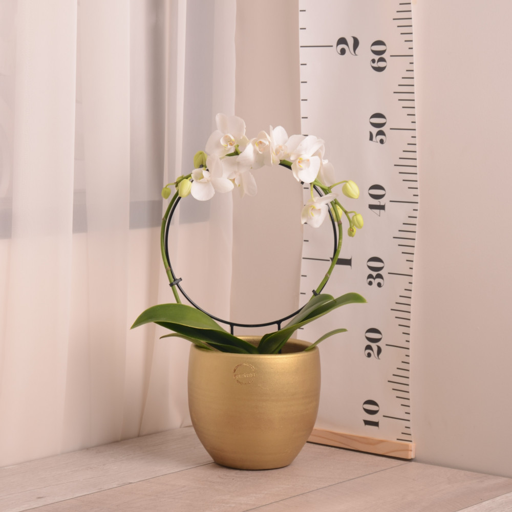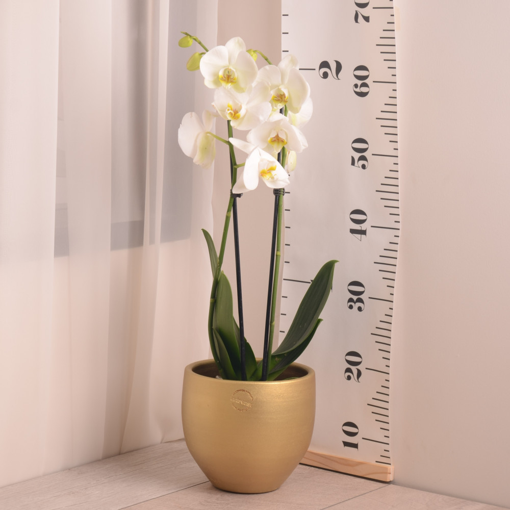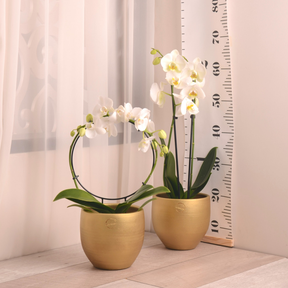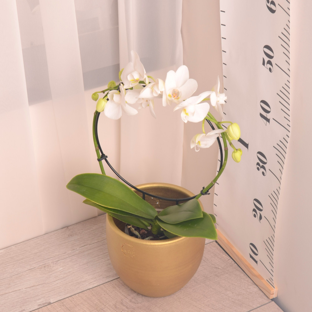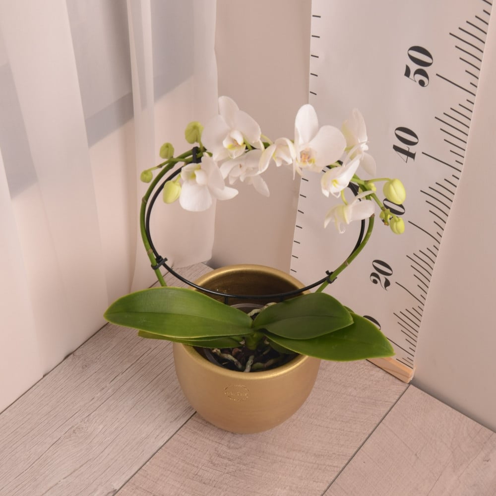 أوركيد أصفر مع حوض سيراميك ذهبي