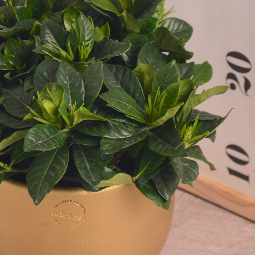 توزيعات ببروميا في وعاء سيراميك مع تغريسة العيد