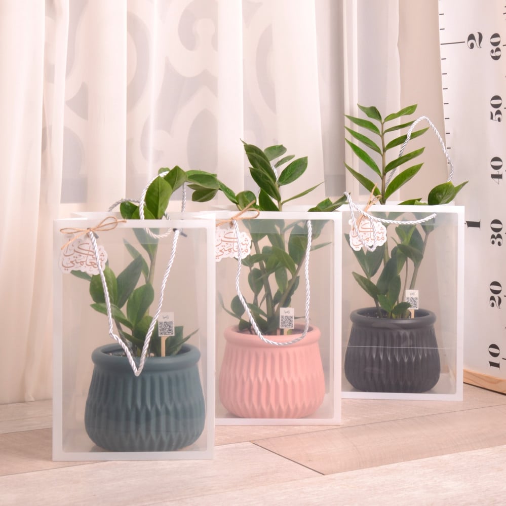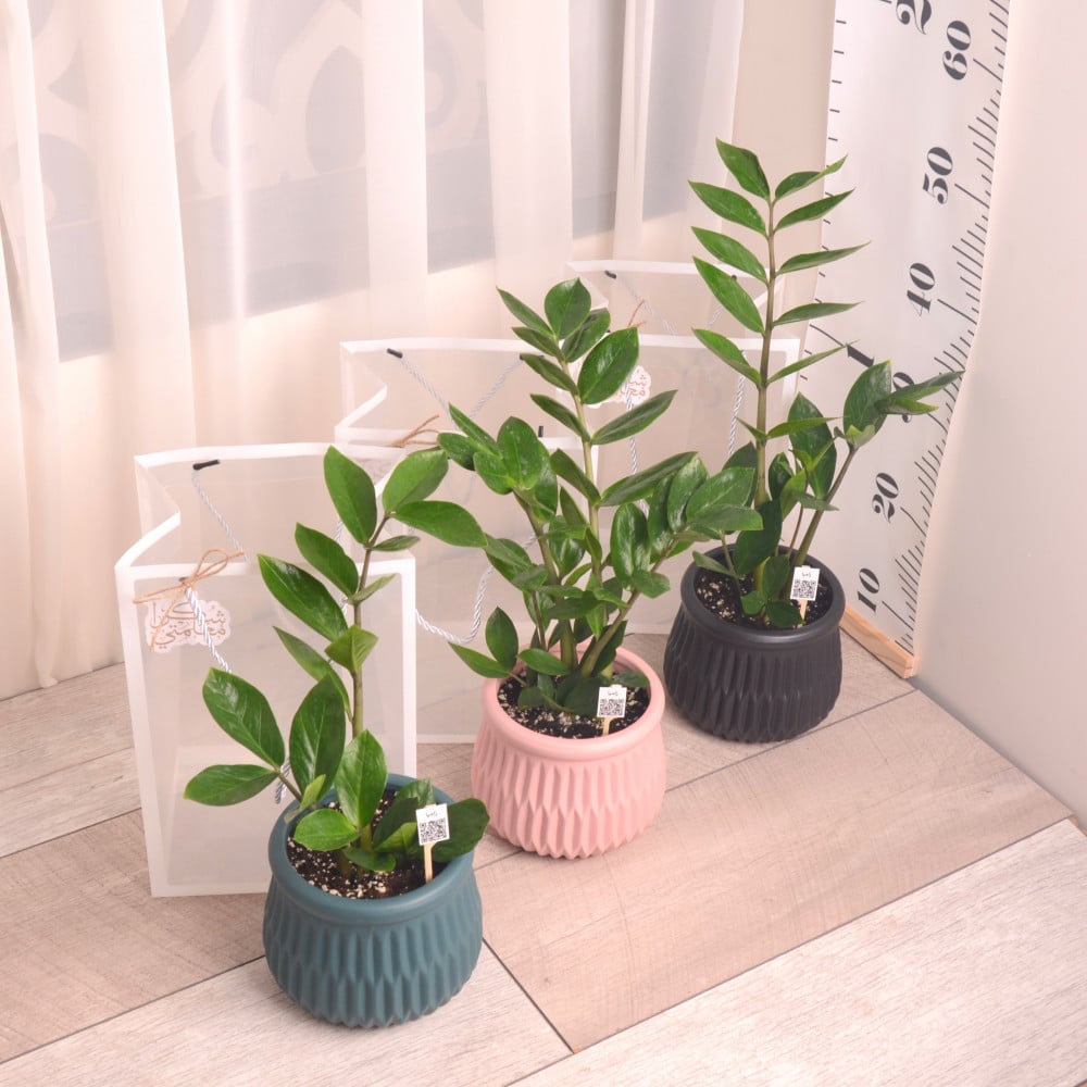 نبتة الزاميا القوية مع حوض سيراميك بألوان,مع كيس هدية وتاق شكراً معلمتي