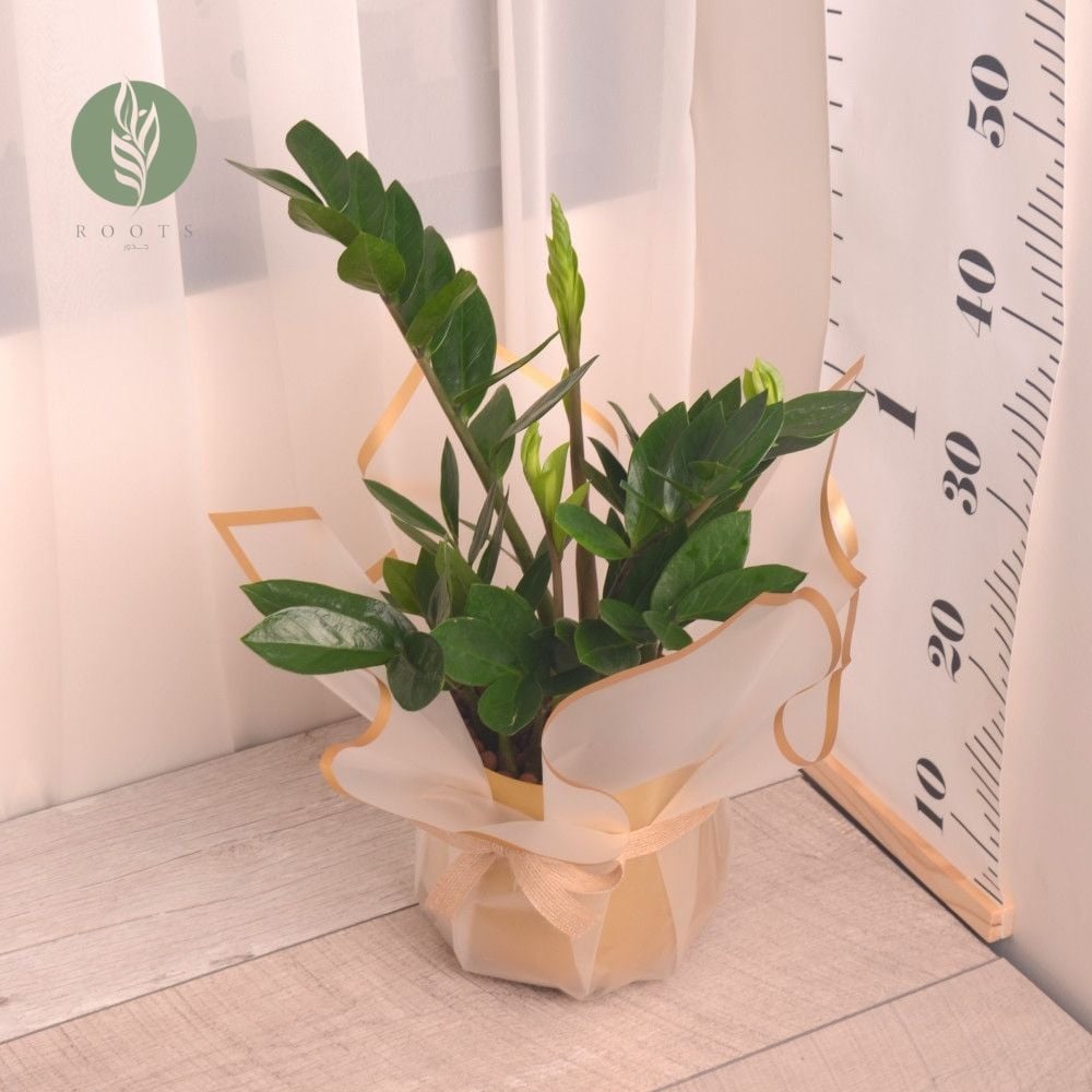 زنبقة السلام الأشرعة البيضاء مع حوض بقاعدة منفصلة