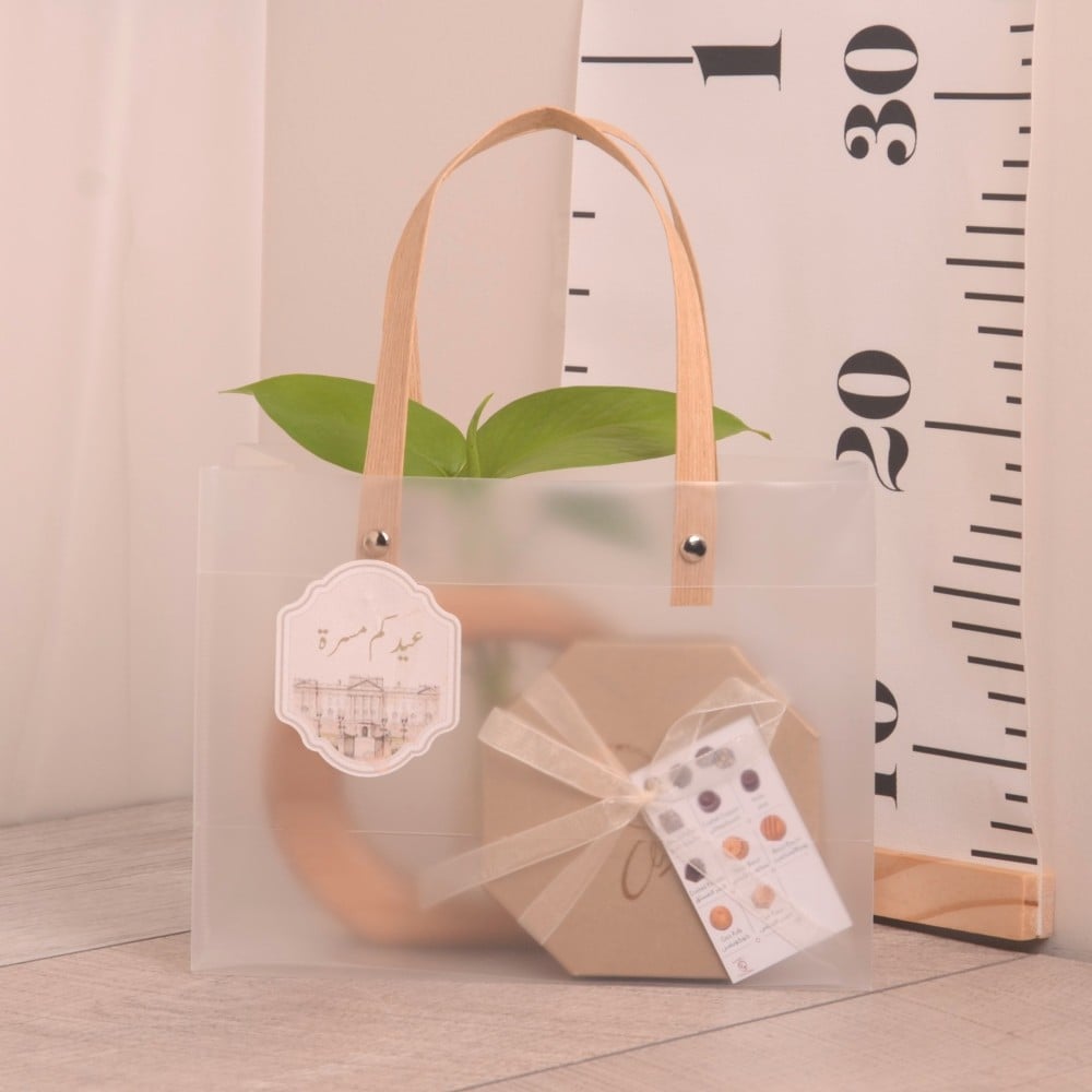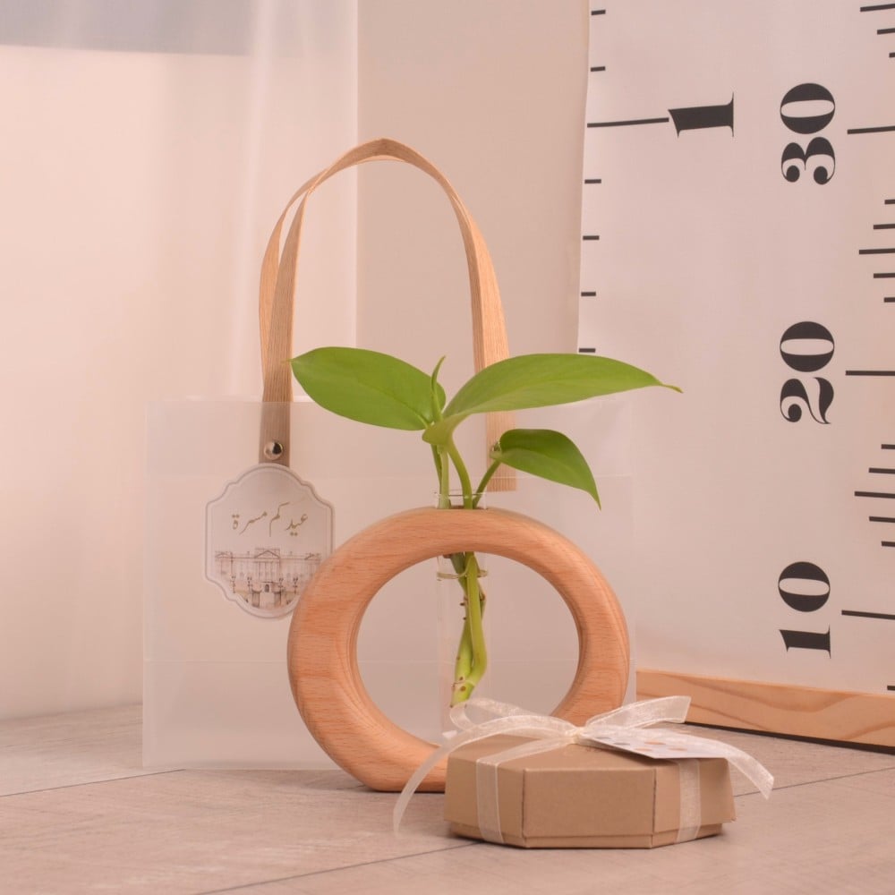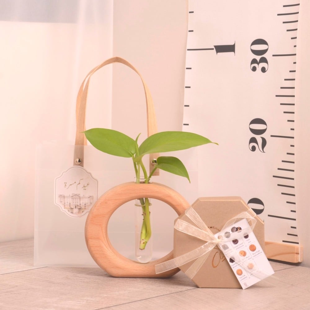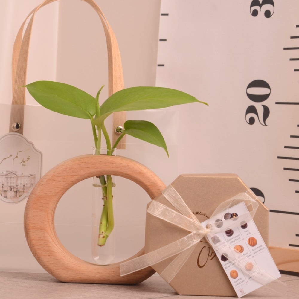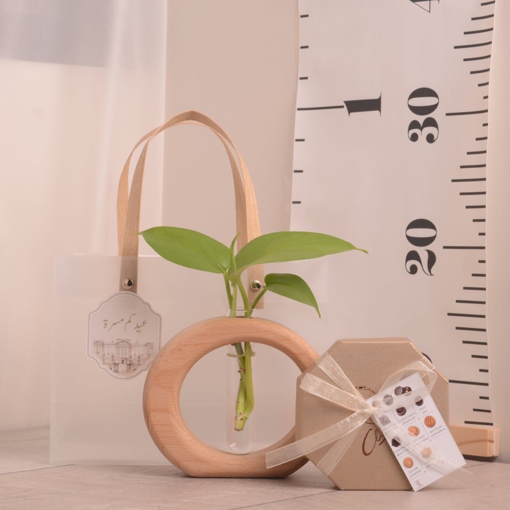 وعاء تجذير دائري من الخشب مع علبة شوكولاتة هدية العيد