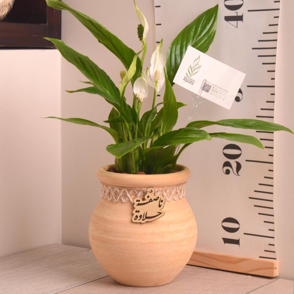 زنبقة السلام في جرة فخارية (قرقيعان)مع بتعليقة خشبية ناصفة حلاوة